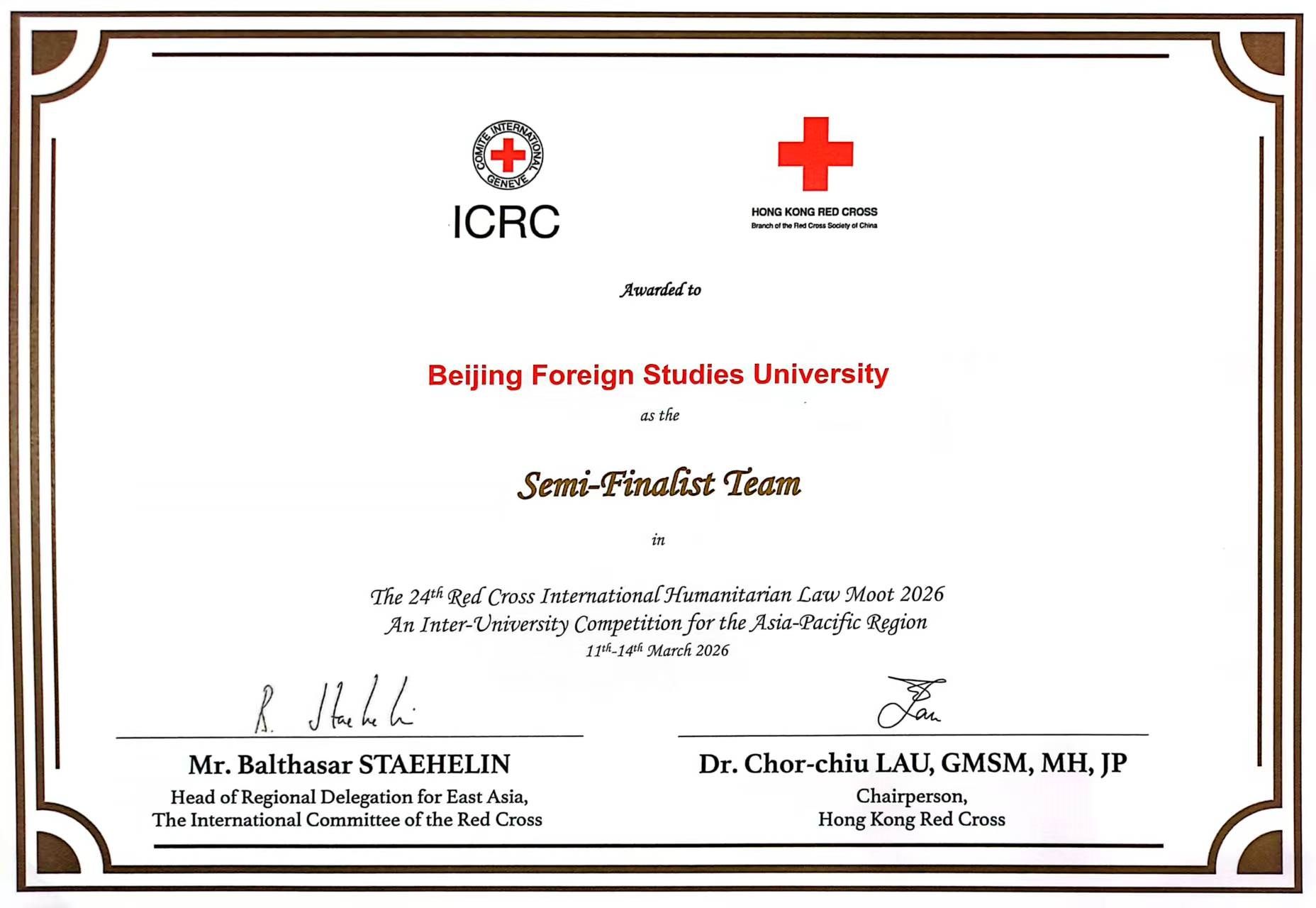 站在亚太赛的赛场上回望,从2025年5月到2026年3月,近一年的时间,从国内赛到亚太赛,我们跟随着红十字国际委员会的脚步,一次次触摸国际人道法在真实世界中的脉动。每一场比赛都是一次深度学习:在法官渊博的提问中领略法律的深邃,在对手完美的陈述中看见自己的不足,在不断修正与突破中体会人道法平衡军事必要与人道需求的精妙,这些瞬间都让人深感压力的同时也非常享受。从一场场比赛中走来,我们以惶恐之心求知,以信任之心相持,以谦卑之心学习。当比赛真的告一段落,心中满是对人道法的不舍,不舍那些彻夜讨论的夜晚,不舍法庭上思维碰撞的瞬间,更不舍这门充满温度的法律带来的感动。