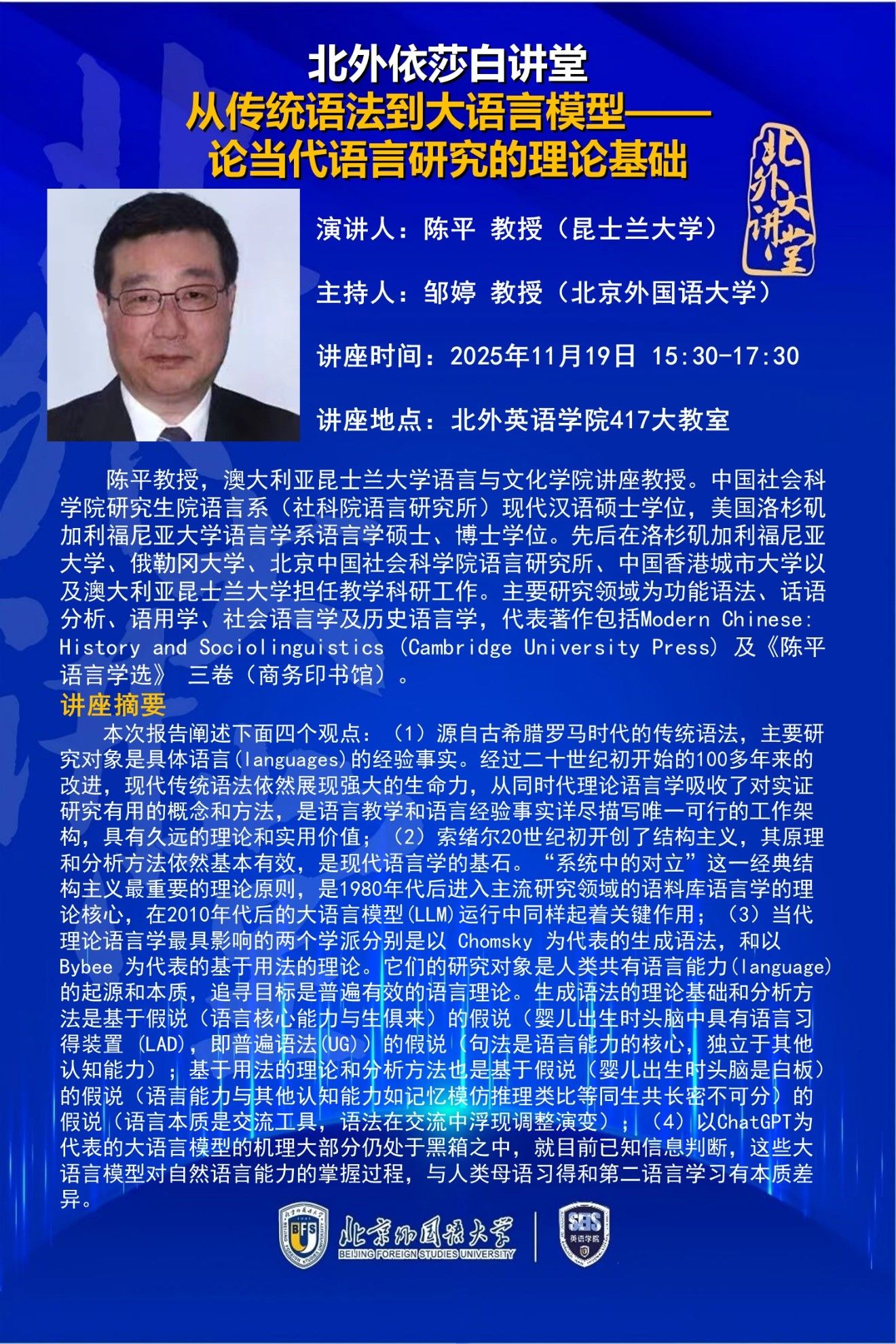 11月19日韩国三级片讲座 :从传统语法到大语言模型——论当代语言研究的理论基础