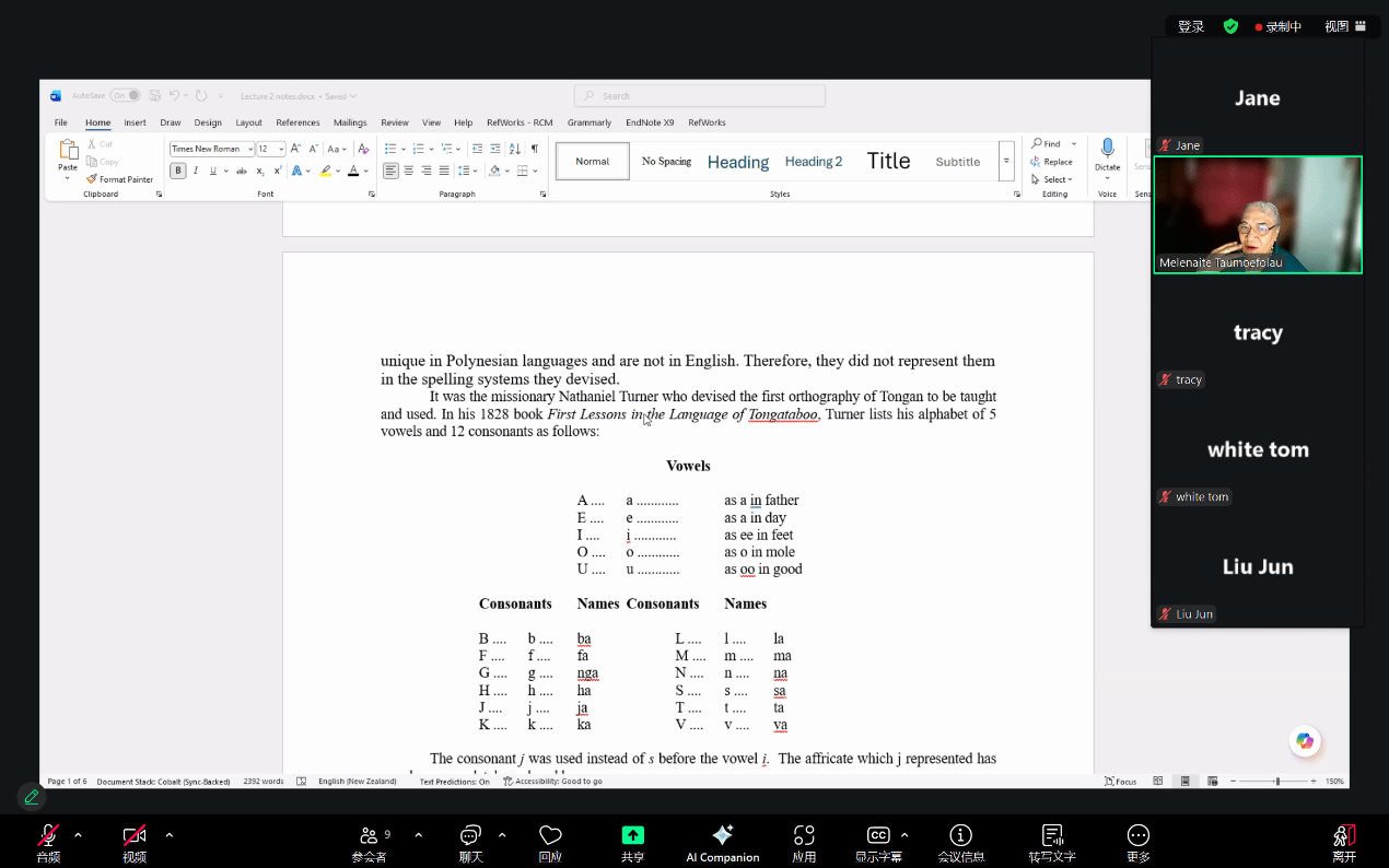 南太平洋语言与文化中心和世界语言博物馆邀请,汤加语外国专家梅莱奈伊特·塔乌莫艾富拉乌(Melenaite Taumoefolau)博士在线上做了题为“波利尼西亚语言语音学与正字法相关问题”(Issues in Polynesian Phonology and Orthography)的韩国三级片讲座
