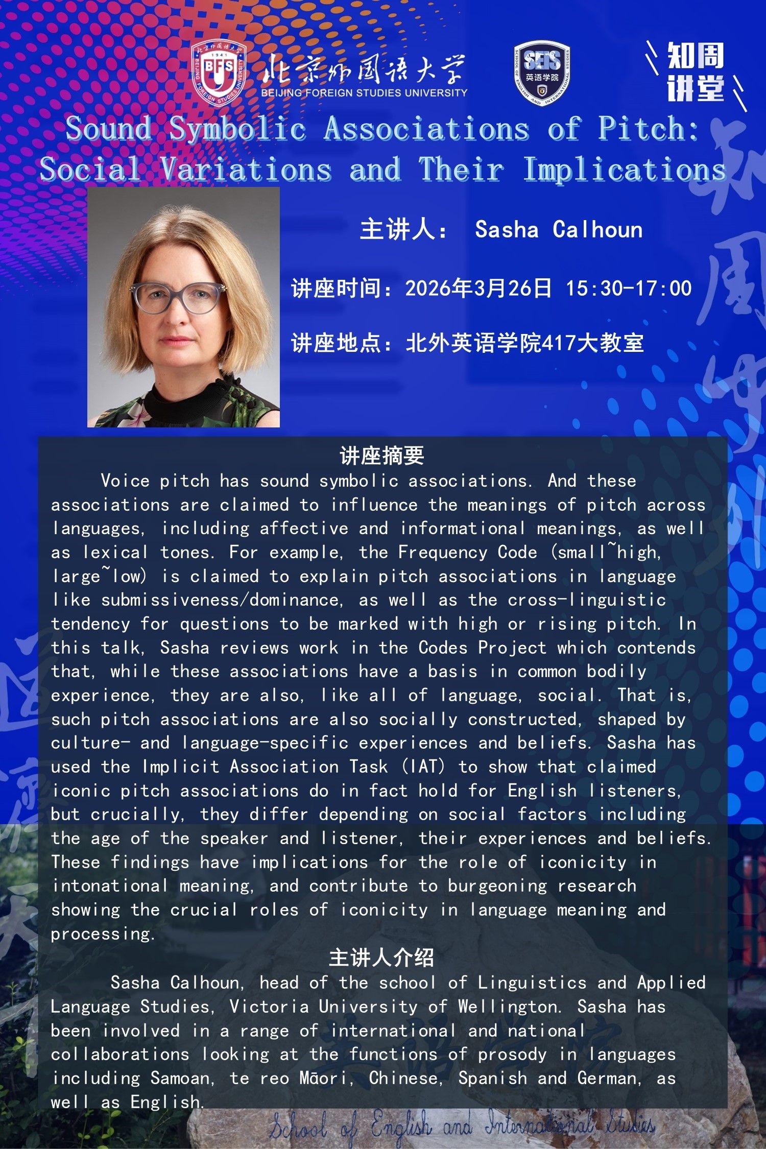 3月26日韩国三级片讲座 :Sound Symbolic Associations of Pitch: Social Variations and Their Implications