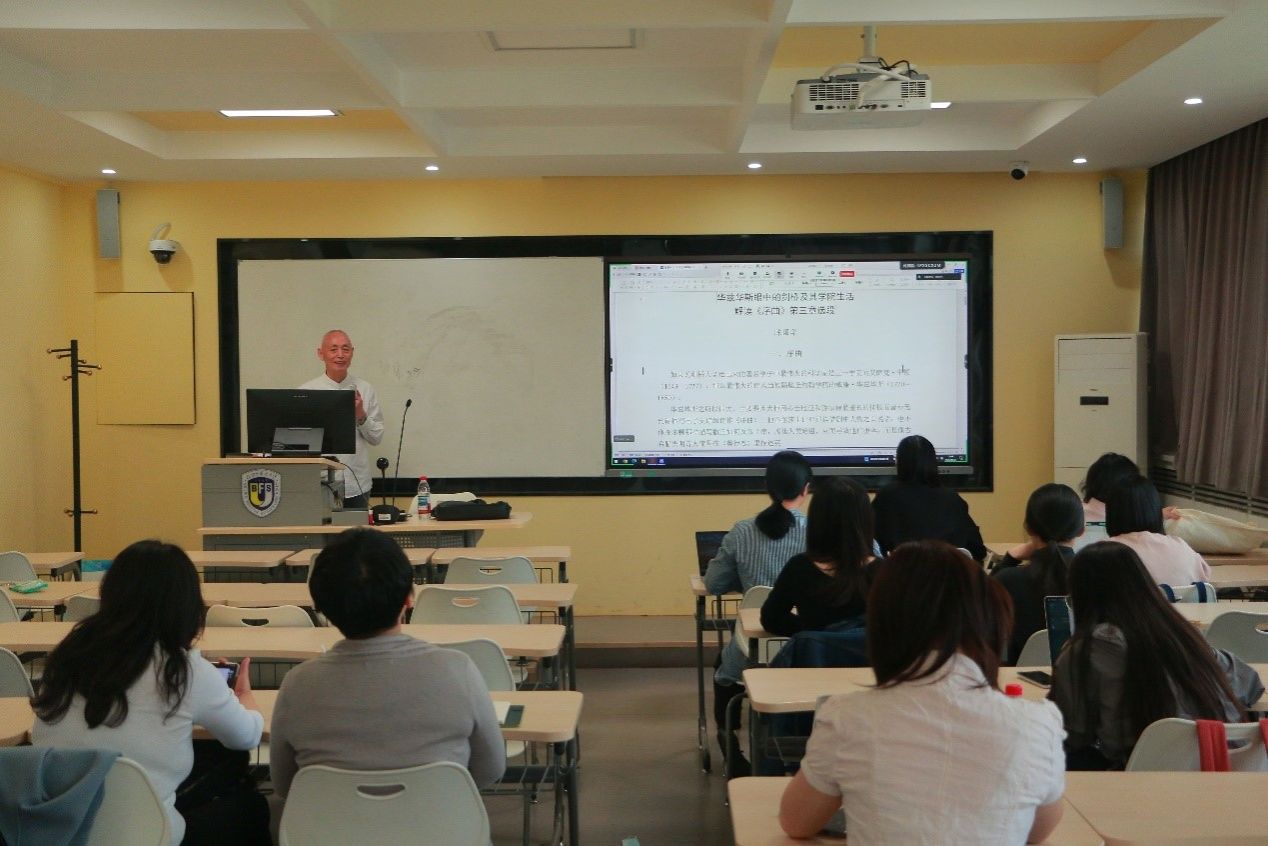 开始前仍在反复推敲译文遣词造句是否达到"信达雅"的境界,其治学态度令在场师生深为感佩。