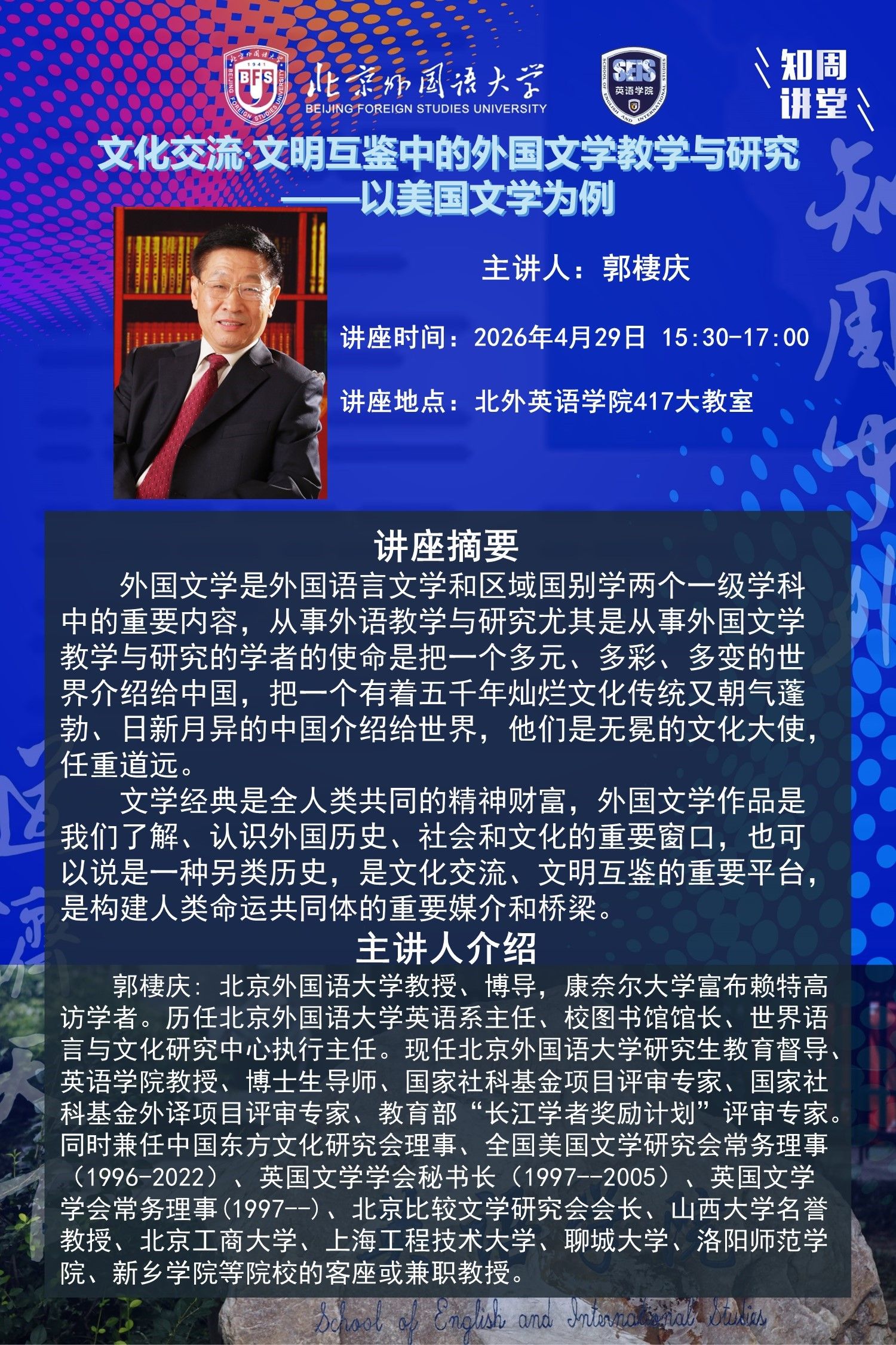 4月29日韩国三级片讲座 :文化交流·文明互鉴中的外国文学教学与研究——以美国文学为例
